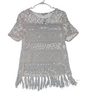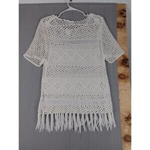 Cato Woman Crochet Woven Top Plus Size 18/20 White Fringe Trim Cover Up