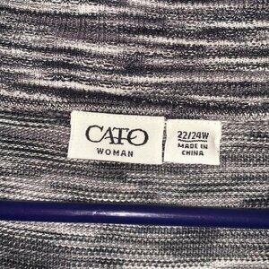 Cato Woman Open Front Cardigan 22/24W Gray/Black Striped 60% Cotton 40% Rayon