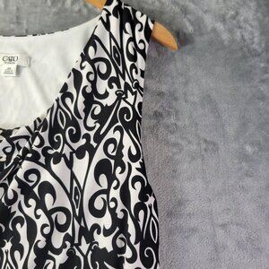 Elegant Cato Woman sheath dress in plus size 18W 🖤🤍 featuring a bold black and white baroque print. Sleeveless with flattering ruched detailing and comfortable stretch fabric. Perfect for office wear, cocktail parties, special occasions, or as a chic mother-of-the-bride option.