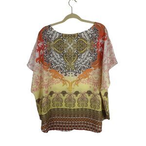 Cato Woman Pullover Top Blouse Boxy Multicolor Vibrant Womens 22/24W Lightweight Casual Career Silky
