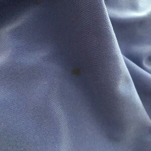 The ruching makes this beauty very slenderizing Selling for low price due to: one snag and 2 small stains. Stains should come out with laundering with a little dawn dish detergent on the spots.