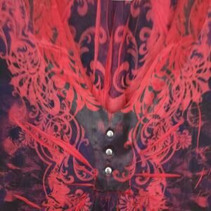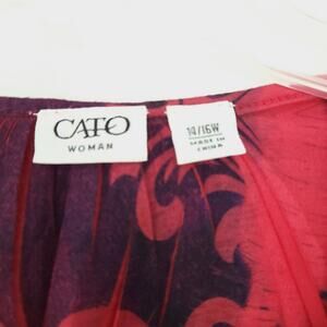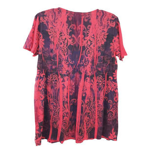 Cato Woman Short Sleeve Shirt 14/16W Red Black Damask Print Short Sleeve Top