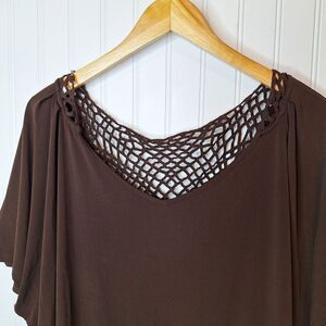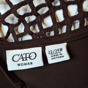 Cato Woman Size 22/24W Tunic Top Brown Crochet Back Neckline Relaxed Stretch