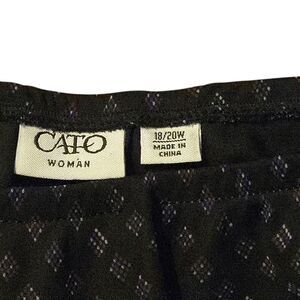 This is a whimsical Cato skirt in size 18W, designed with a fairy theme in mind. The skirt is a midi length A-line style, made of polyester material in a black and purple color scheme. It has a unique and enchanting aesthetic that combines elements of whimsy and gothic styles, perfect for those who appreciate a touch of magic in their wardrobe.