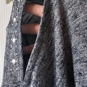 It has peep shoulders as well to make this sweater stand out! The metal embellishments brings it all together to make it the perfect sweater for all occasions!