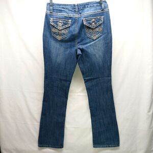 Cato Women Blue Rhinestone Embellished and Embroidered 5 Pockets Denim Jeans 10 Stretch Jeans.
