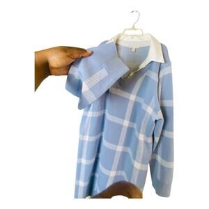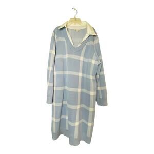 Cato Women Long Sleeve Plaid Collared Sweater Dress Blue White Plus Size 18/20W