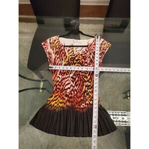 Cato Women Multi Pleated 100% Polyester Scoop Neck Short Sleeve Top Blouse Large.