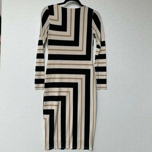 Cato Size XS Dress Cream Geometric Striped Long Sleeve Sheath Workwear Career