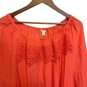Cato Women Tunic Top 18/20 Coral Boho Crochet Peasant Flowy Festival Cottagecore