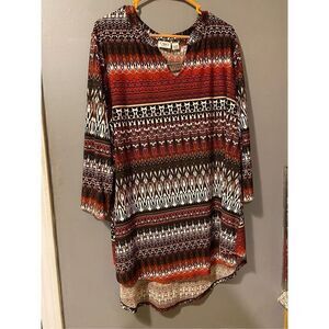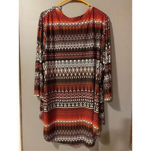 Cato Womens 22W/24W Top Geometric Print Stretch Knit 3/4 Sleeve Plus Tunic