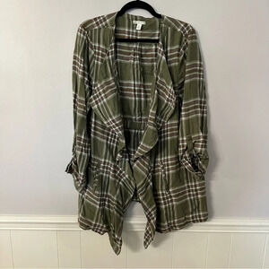 Cato Women’s 3/4 Sleeves Green Open Front Draped Plaid Cardigan Size XL GUC