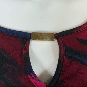 Cato Women’s Asymmetrical Red Shades Brush Stroke Design 3/4 Sleeve Tunic Top