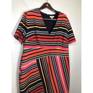 Cato Womens Black Orange Striped Short Sleeve Dress V-Neck Size 22w