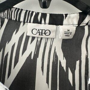 Cato Womens Black & White Abstract Print Sheer Tunic Top With Ruched Sleeves & A