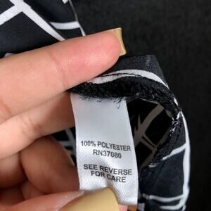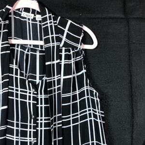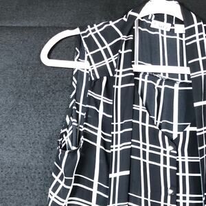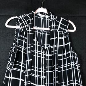 Cato Womens Blouse Black White Striped Front Tie Neck Sleeveless Workwear Large