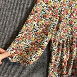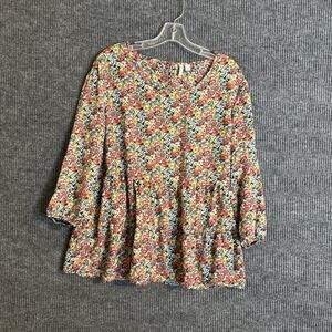 Cato Womens Blouse Size XL Floral Multi Color Button Front Ruffle Boho Peasant