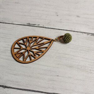These tear drop earrings are solid brown with olive green beaded accents. They're beautiful quality and are brand new.