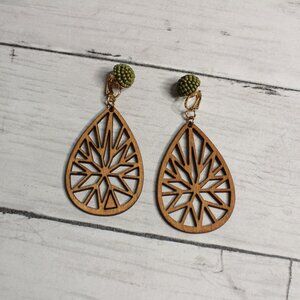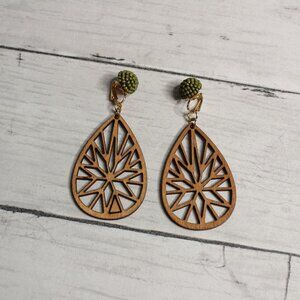 Cato Women's Brown Olive Wooden Teardrop Dangle Clip On Earrings Nickle Free