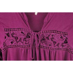 Cato Womens Burgundy 3/4 Bell Sleeve Pullover Blouse Crochet Accent Size Large