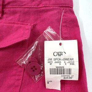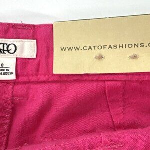 Cato linen blend stretch pink capri pants. Great for travel or hiking. Women's size 8. New with tags. Waist is about 30 inches and inseam is about 19 inches. Please see photos for complete details and ask any questions. Orders are shipped out daily, Monday – Friday.