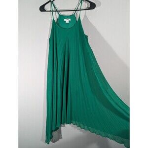 Cato Womens Dress Halter Tank A-Line Handkerchief Hem Pleated Green Size S