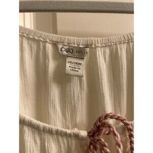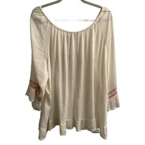Cato Women's Embroidered Gauze Lace Up Top Plus Size 26/28W Peasant Boho Cream