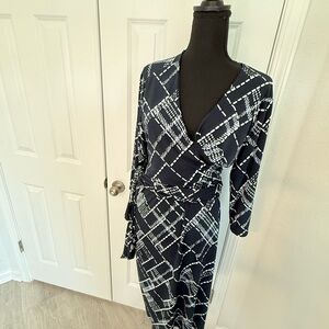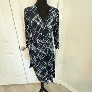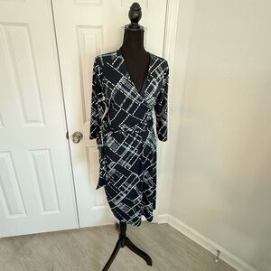 Cato Women’s Faux Wrap Dress Navy Geometric Long Sleeve Dress Size 18-20