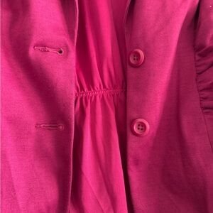 Stylish fuchsia blazer by Cato. Features ruched sleeves and button closure. Ideal for adding flair to your outfit.