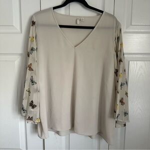 Cato Womens Ivory Butterfly Pleated Sleeve Top Sz M Boho Fairy Festival Whimsy