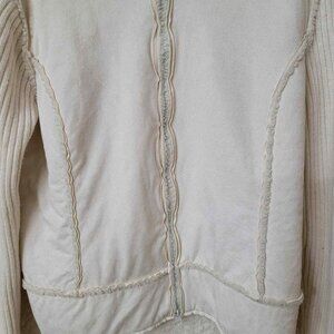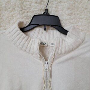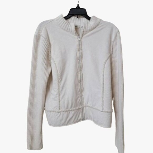 Stay stylish and warm with Cato's full zip long sleeve jacket. This large size, ivory-colored jacket is made of high-quality polyester and features stretch sleeves for added comfort and mobility.