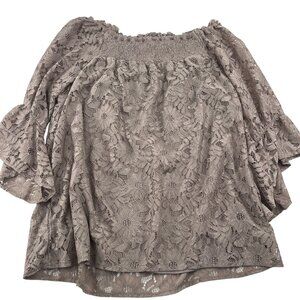 Cato Womens Lace Blouse size large Floral Pattern Taupe Loose Fit