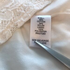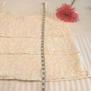 Cato women's lace tiered cami, scoop neckline with beautiful braiding, adjustable braided straps, fully lined, 66% Cotton and 34% nylon, in great preowned condition, no flaws.