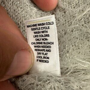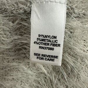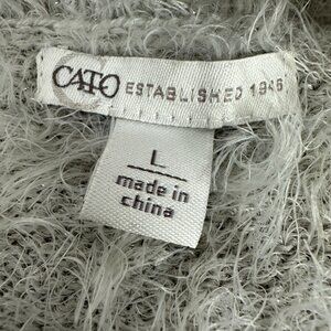 Stay chic and cozy in this large gray Cato Women's fluffy cardigan sweater. It's crafted with pockets and a unique blend of fibers, including a hint of metallic for a shimmering touch.