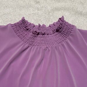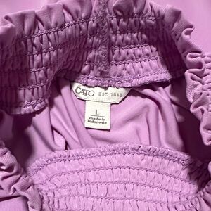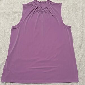 Cato women’s sleeveless top. Size large. Lavender color with ruched mock neck. Polyester/spandex blend. Smoke free and pet free home.