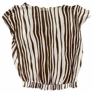 Cato Womens M Chiffon Blouse Semi Sheer Brown White Striped Cami Elastic Waist