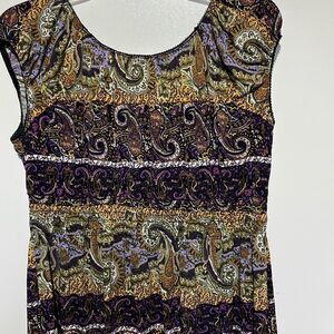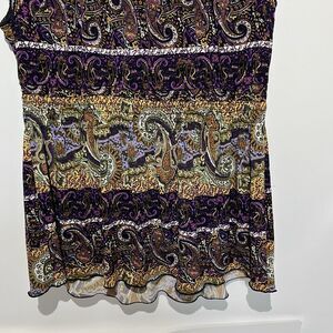 Cato Women's Multicolor Paisley Lace Smocked Ruffle Sleeveless Blouse Size 14