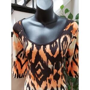 Cato Women's Multicolor Polyester Scoop Neck Short Sleeve Long Maxi Dress Size L.