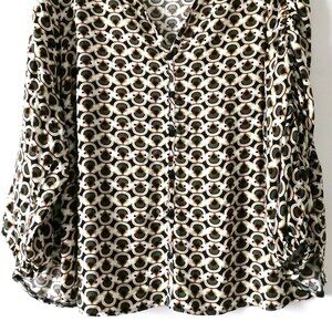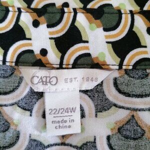 Cato Womens Multicolor Ruched Sleeve V Neck Geometric Blouse Top Size 22/24W