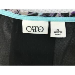 This stylish Cato blouse in size XL is perfect for any fashion-forward woman. The short-sleeved tunic features a round neckline and a sheer back, adding an elegant touch to any outfit. The geometric pattern in multicolors adds a playful element to the basic style.