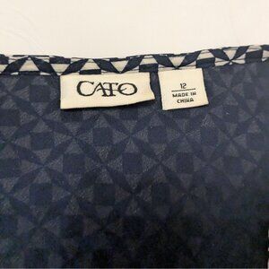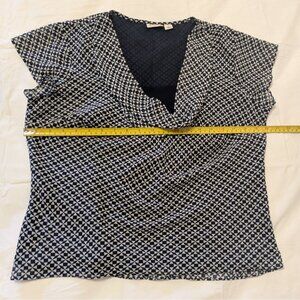 Cato Womens Navy & White Diamond-Print Cowl Neck Blouse Size 12 Polyester