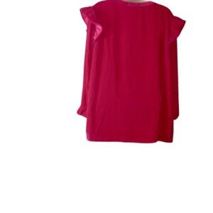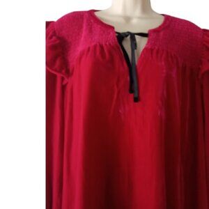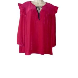 Cato Womens Peasant Top Dark Pink Velvet Ruffled Smocked Tie Neck XL