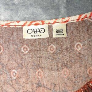 Cato Womens Plus 22 24 Vintage Artsy Vibrant Flutter Sleeve Boho Statement Top