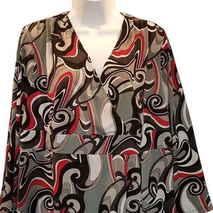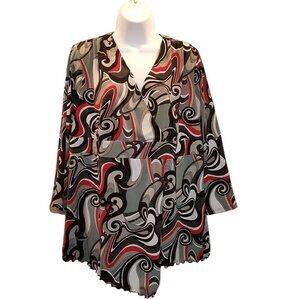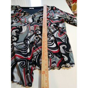 Cato Women's Plus 22W Top Faux Wrap Empire Waist 3/4 Sleeve Black Red Asymmetric