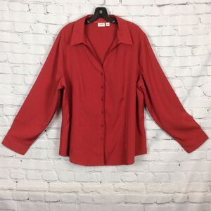 Cato Women’s Plus Size 22/24 Button Up Blouse Red Long Sleeve Stretch Fitted