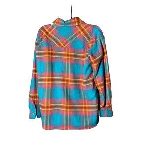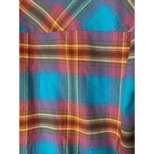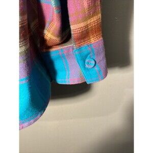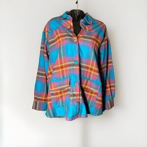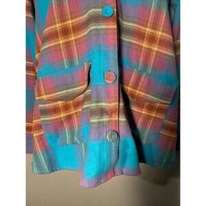 Cato Shacket Jacket Flannel Plaid Multi Color Aqua Blue Button Oversized Medium Fits Like Large