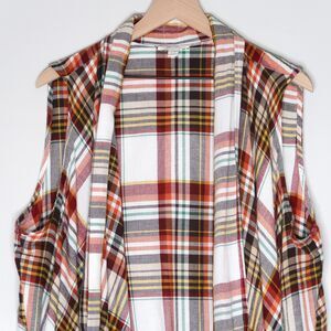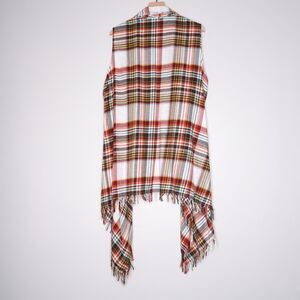 Cato Womens Shawl Cardigan 22/24W Orange Western Plaid‎ Fringe Cotton Festival