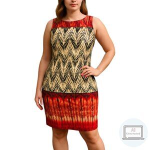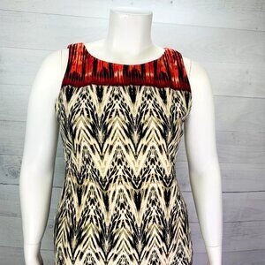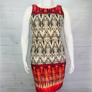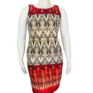 Cato Womens Sheath Dress Sleeveless Stretch Knit Red Print Keyhole Back Size L
