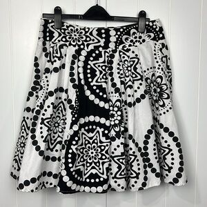 Cato Womens Skirt 10 Black & White Polka Dot Geometric Print Side Zip Pleats Full Skirt Knee Length Boho Eye-Catching EUC