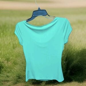 New with tags, Add a touch of elegance to your wardrobe with this gorgeous green polyester blouse from Cato. Featuring a classic round ruffled neckline & short sleeves, this blouse is perfect for any occasion, whether it's a formal event or a casual day out. The pullover closure and ruffle accents add a touch of femininity, while the slimming and stretchy features ensure a comfortable and flattering fit.